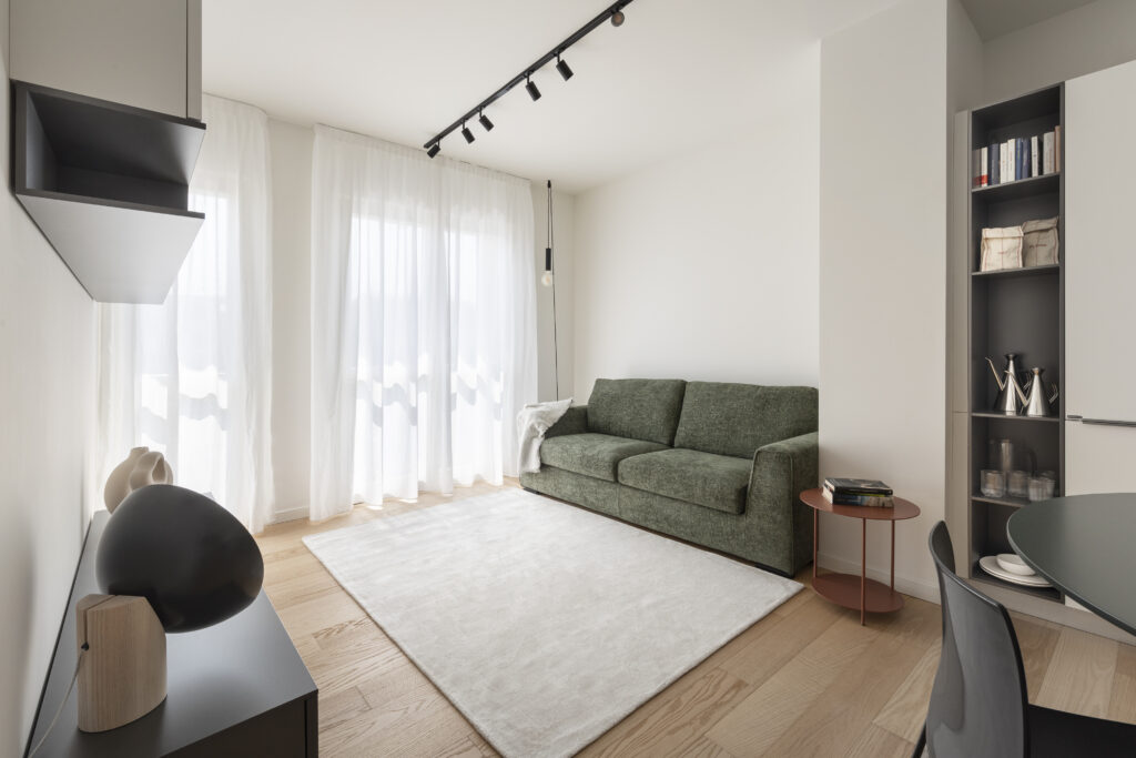 I 27 appartamenti sono disposti su 6 piani, con diversi tagli, per soddisfare tutte le esigenze abitative: monolocali, bilocali, trilocali, quadrilocali e attici con ampie e godibili terrazze.
